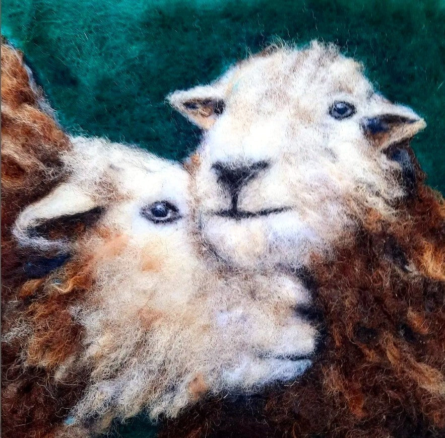 Archival giclee signed print derived from an original felt painting. This quality reproduction captures the "Herdies Hug" artwork with precision and vibrance.
