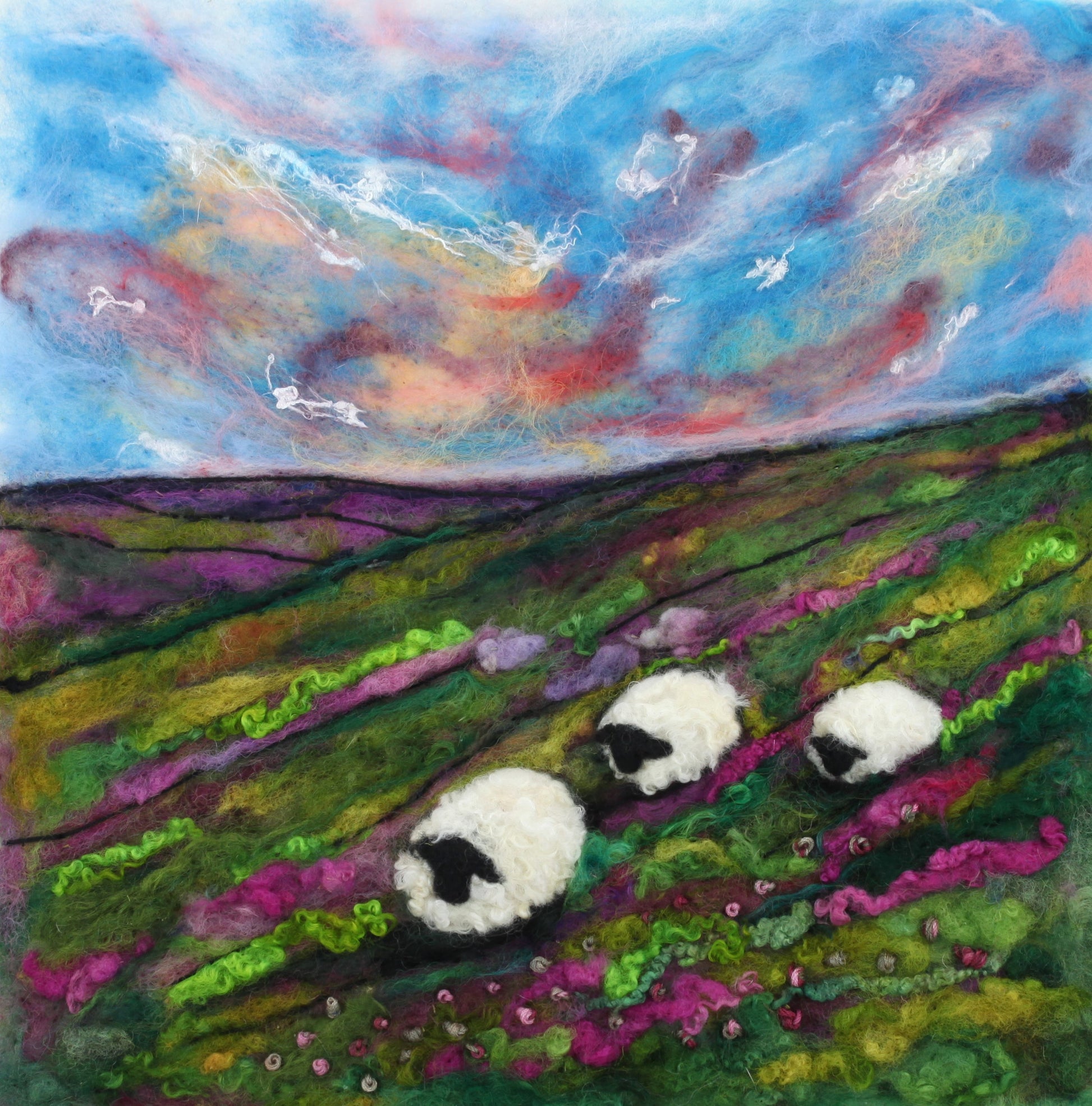 Moving to Green Pastures is a captivating archival giclee signed print created from an original felt painting. This exquisite reproduction preserves every delicate detail and rich color of the artwork.