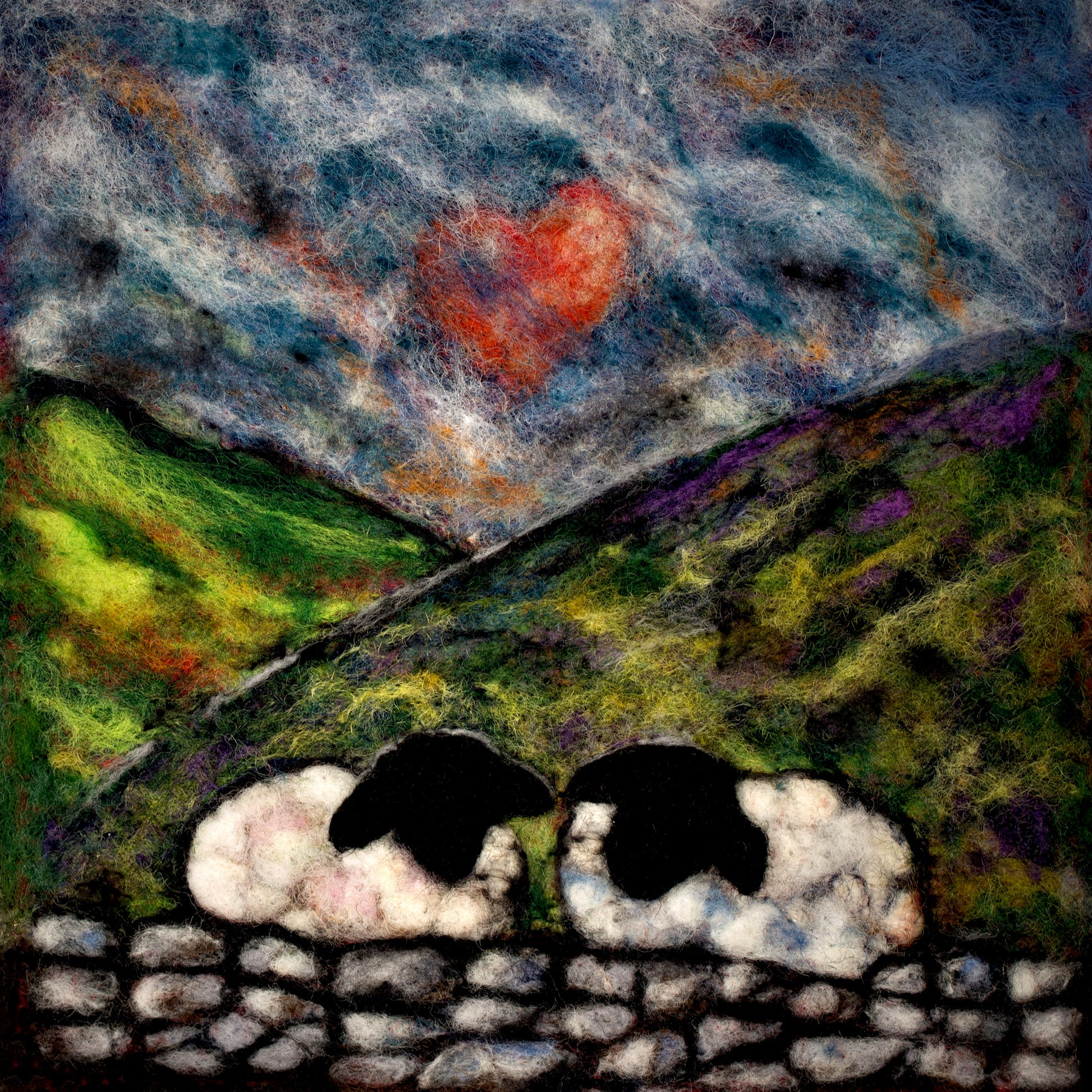 Sheep Love is a charming archival giclee signed print reproduced from an original felt painting. This premium quality print captures all the delicate textures and colors of the handcrafted artwork with exceptional fidelity.