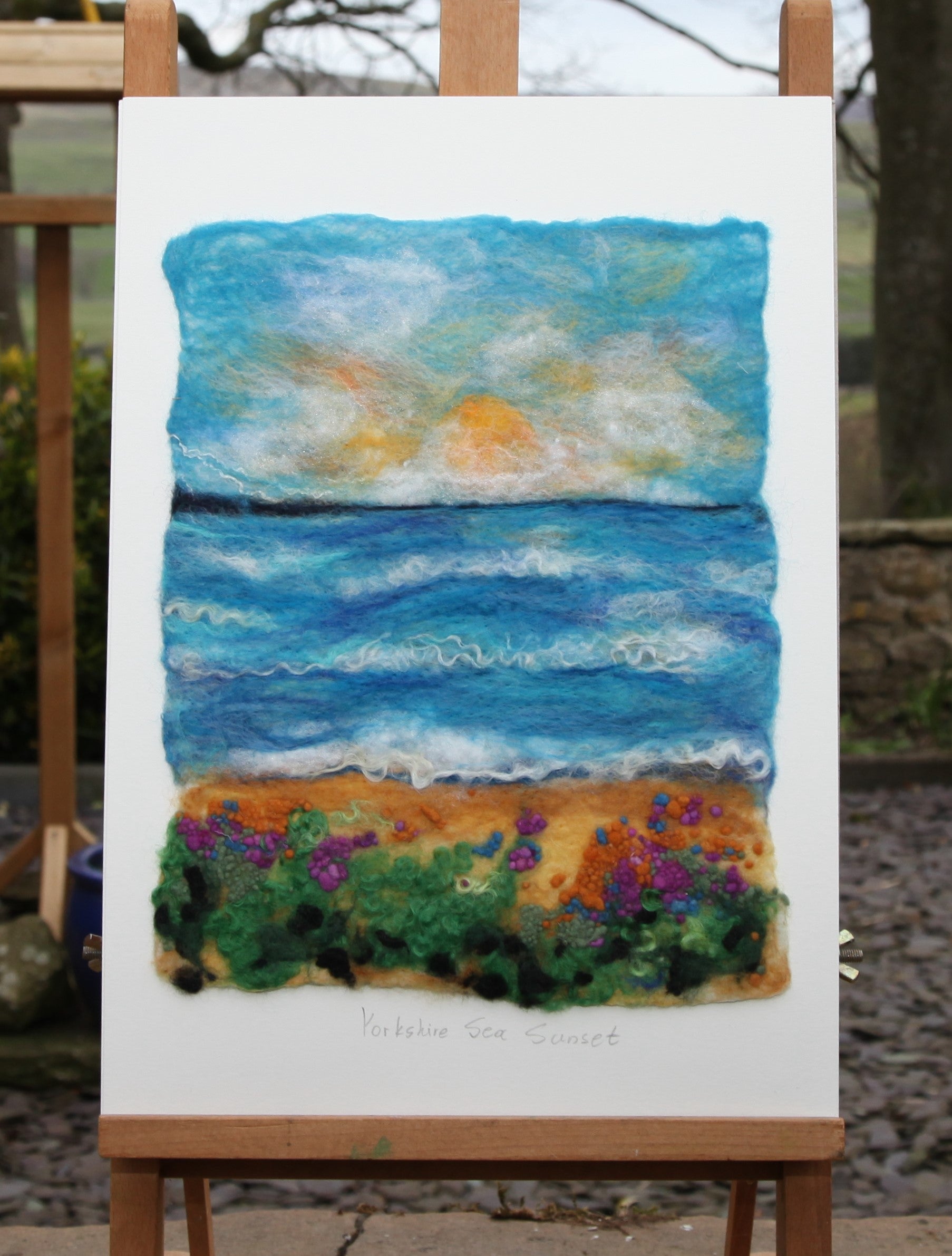 Inspired by the Yorkshire meadows and coastline, this workshop will guide you through creating a richly layered wet-felted artwork full of depth. You can choose to create either “Yorkshire Sunset in the Meadow” or “Yorkshire Sea Sunset ”